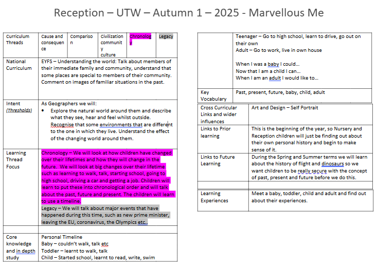 Topic: Our topic this term is 'Marvellous Me'. See the knowledge organiser below:​